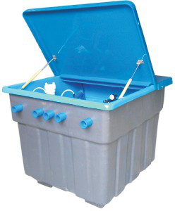 (3) 箱體內(nèi)部表面光滑,底部設(shè)有地漏和水泵平臺,由于排水及時和設(shè)計了高出底部的水泵平臺,可防止水泵被淹。